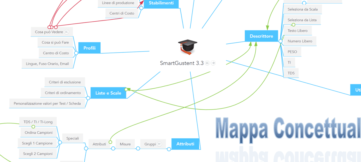 Smart Gustent gestisce i descrittori non solamente come "cosa e come rilevare" ma il descrittore è l'unione di un attributo + l'associazione di quest'ultimo ad un Test, è durante questa associazione che possiamo stabilere la scala / lista di valutazione, eventuali valori di riferimenti e/o aree di validità.